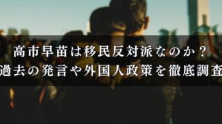 政治 高市早苗は移民反対派なのか?過去の発言や外国人政策を徹底調査 高市早苗は移民反対派?高市早苗が掲げた外国人政策や経済・防衛政策を徹底調査しました。日本の安全と文化を守る高市氏の考え方をまとめます。 2025.10.05 政治